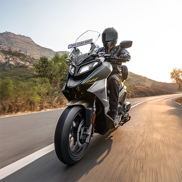 { "Engine": { "Type" : "Liquid cooled, 4 Valve single cylinder SOHC", "Displacement" : "156cc", "Max Power (bhp/rpm)": "10.9 kw (14.6 bhp) @ 8000 rpm", "Max Torque (Nm/rpm)" : "14 Nm @ 6250 rpm", "Ignition" :"Fuel Injection (FI)" }, "Transmission": { "Type": "CVT", "Clutch Type": "Dry, Centrifugal" }, "Suspension": { "Front": "Telescopic Hydraulic shock absorber", "Rear": "Dual shock absorbers" }, "Tyres": { "Front Tyre": "120/70 - [R 14]", "Rear Tyre": "140/60 - [R 14]" }, "Dimensions": { "Length": "1983 mm", "Width": "839 mm", "Height": "1214 mm", "Wheelbase": "1348 mm", "Seat Height": "787 mm", "Ground Clearance": "155 mm" }, "Electricals": { "Battery": "12V- 6Ah /ETZ-7", "Starting System": "Self" }, "Weight": { "Kerb Weight": "142 kg", "Fuel Tank Capacity": "7 L" } }